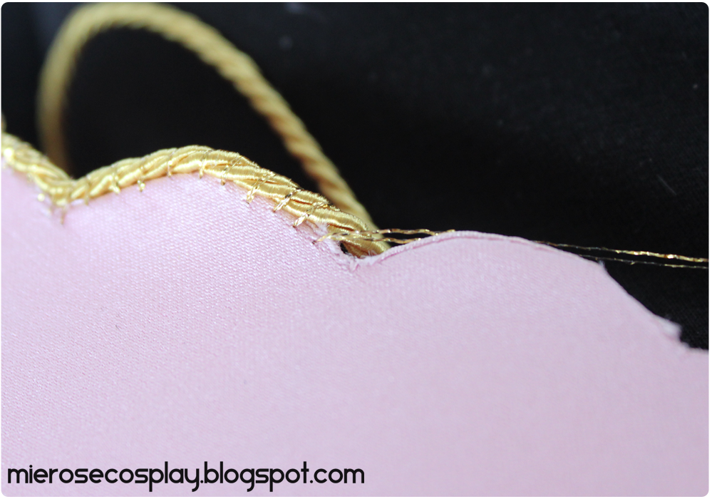 I also added some gold rope to the top of the collar by hand (so much hand work on this costume fuuu) to hide the fact my lining want to get a divorce from the party satin. It is so annoying, but I realized gazing into my references, I am actually on point here, because she do have some detailing on the collar too.